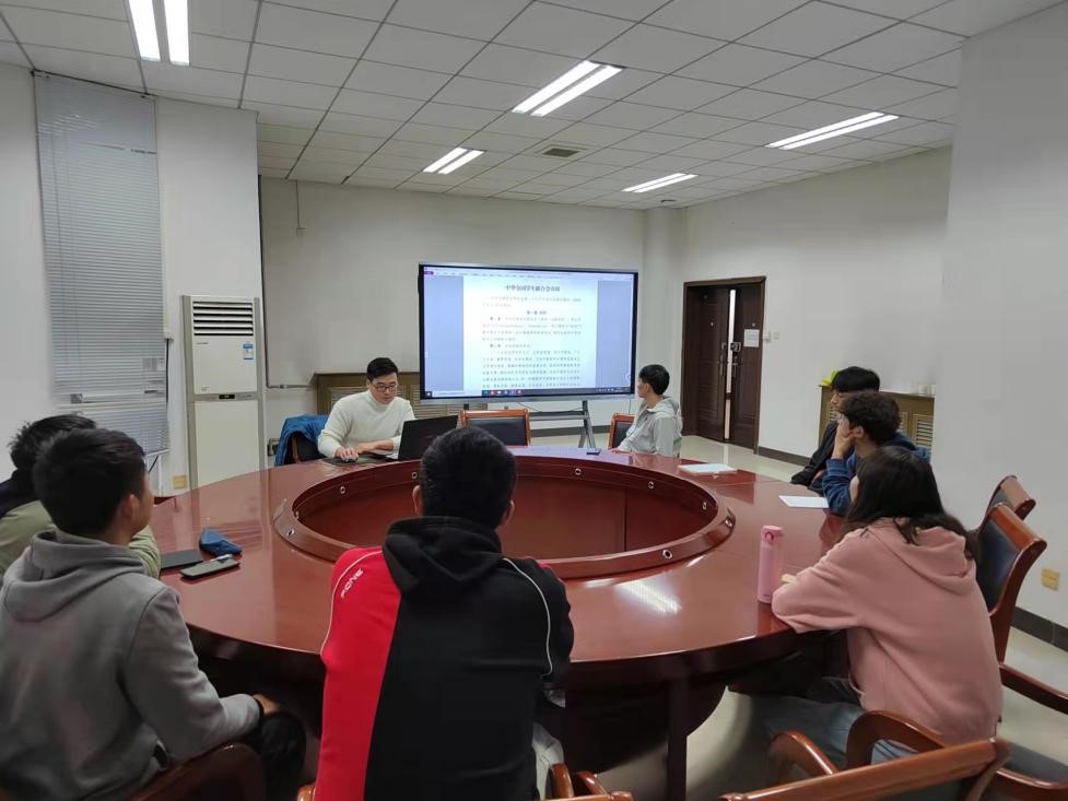 研究生会集体培训会在学院楼307顺利举行。本次培训会由研究生会执行主席高威担任主讲人,主席团成员李晋礴出席会议。