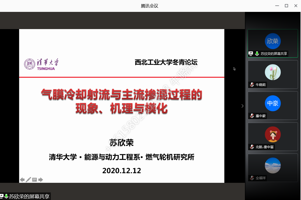 徐慎忍老师盛情邀请,清华大学能源与动力工程系苏欣荣老师、北京航空航天大学航空发动机研究院于贤君老师分别针对气膜冷却和压气机低速模拟进行了两场精彩的学术报告。国内多所著名高校(清华大学、北京航空航天大学、北京理工大学、哈尔滨工程大学、辽宁工业大学、西安交通大学、69成人网