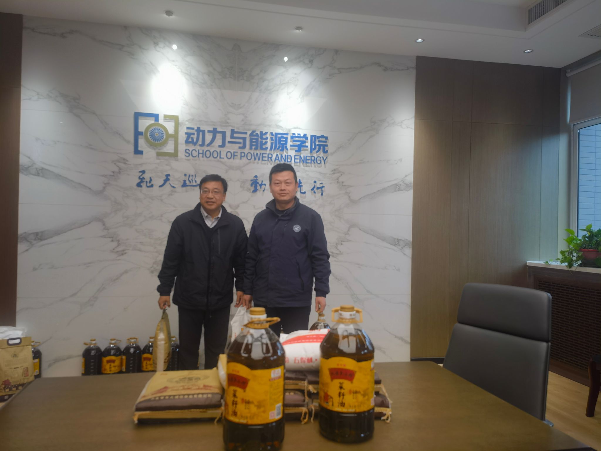 王占学代表学院感谢物业工作人员履职尽责,落实物业管理工作,不怕苦不怕累,出色地完成楼宇保障任务,为学院师生提供了一流的服务,让师生在安全、温馨的环境中开展教学科研工作。并向他们赠送了米、油等慰问品。