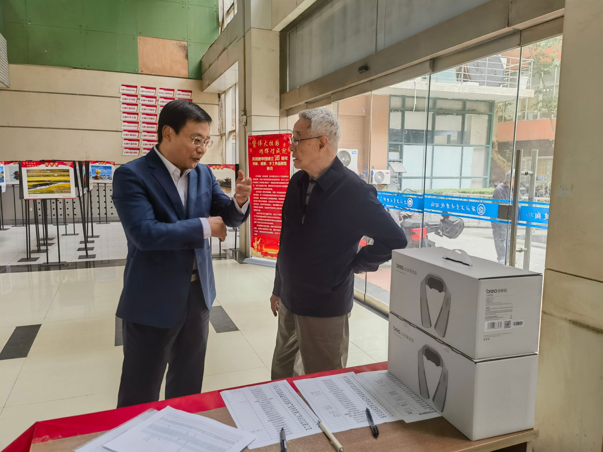 在健翔楼一楼开展了重阳节慰问离退休老教师的活动。