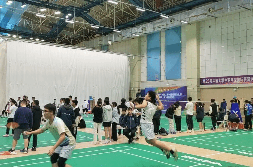 在羽毛球比赛中,动能学院羽毛球队的队员们全神贯注,以矫健的攻防和有力的杀球展现了动能学院学子的风姿。