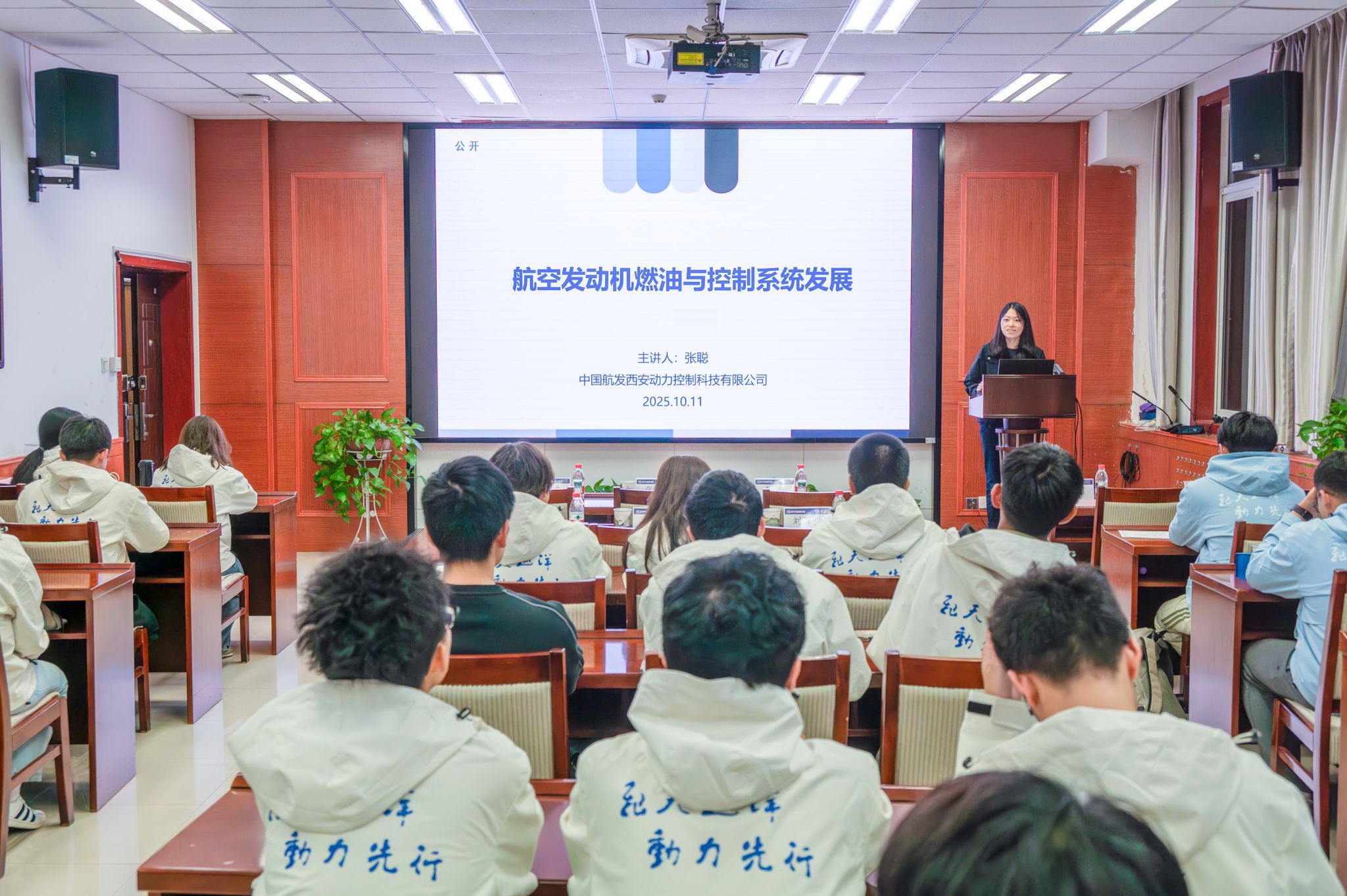校友、中国航发西安动力控制科技有限公司设计研究所副所长张聪担任铸剑2班校外班主任。李磊书记为张聪老师颁发聘书。随后,张聪老师带来《航空发动机燃油与控制系统发展概论》专题报告,与同学们现场交流,同学们收获颇丰。