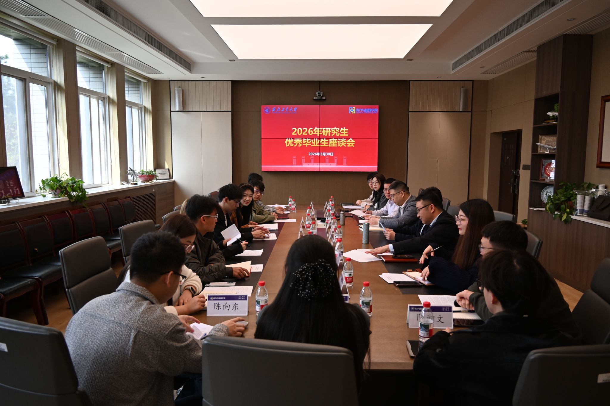在学院211B会议室召开2026年研究生毕业生代表座谈会,学院院长刘存良、党委书记李磊,优秀毕业生代表及辅导员老师参会,会议由党委副书记徐永超主持。