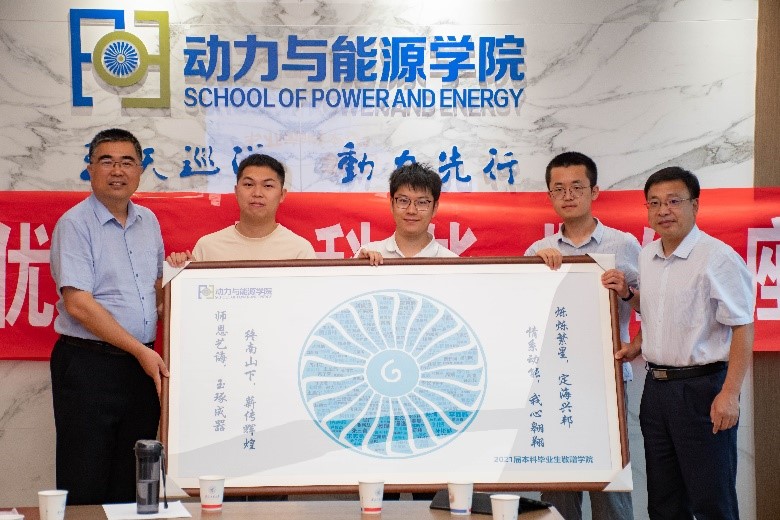 会议伊始,毕业生代表向学院赠送了精心准备的纪念礼物——包含2021届全体本科毕业生姓名的发动机绘画。随后,年级辅导员孔德海老师介绍了2021届本科毕业生的总体情况。闫书记和王院长肯定了全体师生四年来的共同努力,成绩斐然,感谢大家一直以来对学院工作的支持。