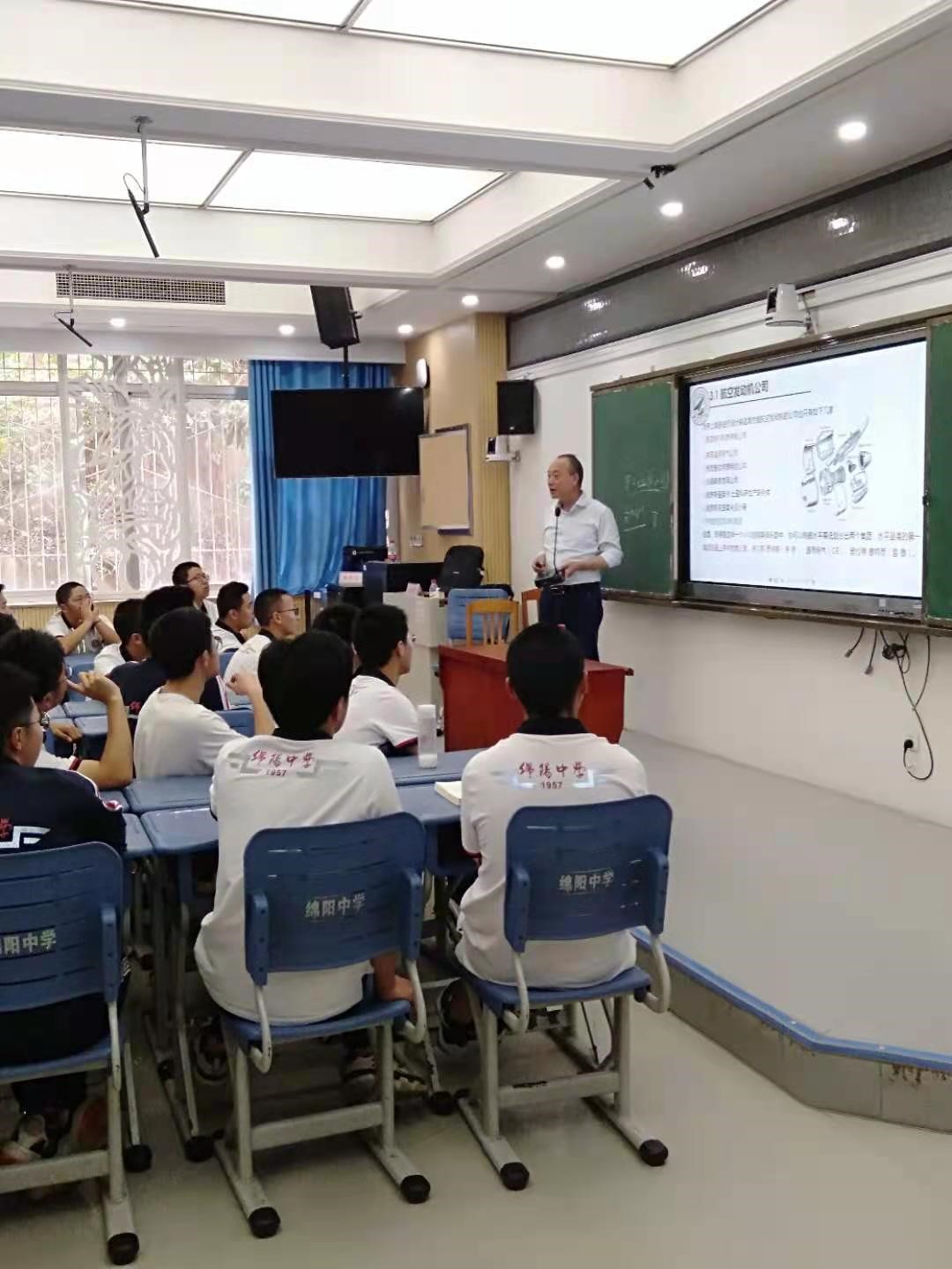 5月14日,郑龙席教授、郭伟民老师首先来到绵阳东辰国际学校为高一400多名学生作了题目为《工业皇冠上的明珠--航空发动机技术》的科普讲座,同时对我校的办学历史、优势学科及杰出校友等学生关注问题进行了介绍。
