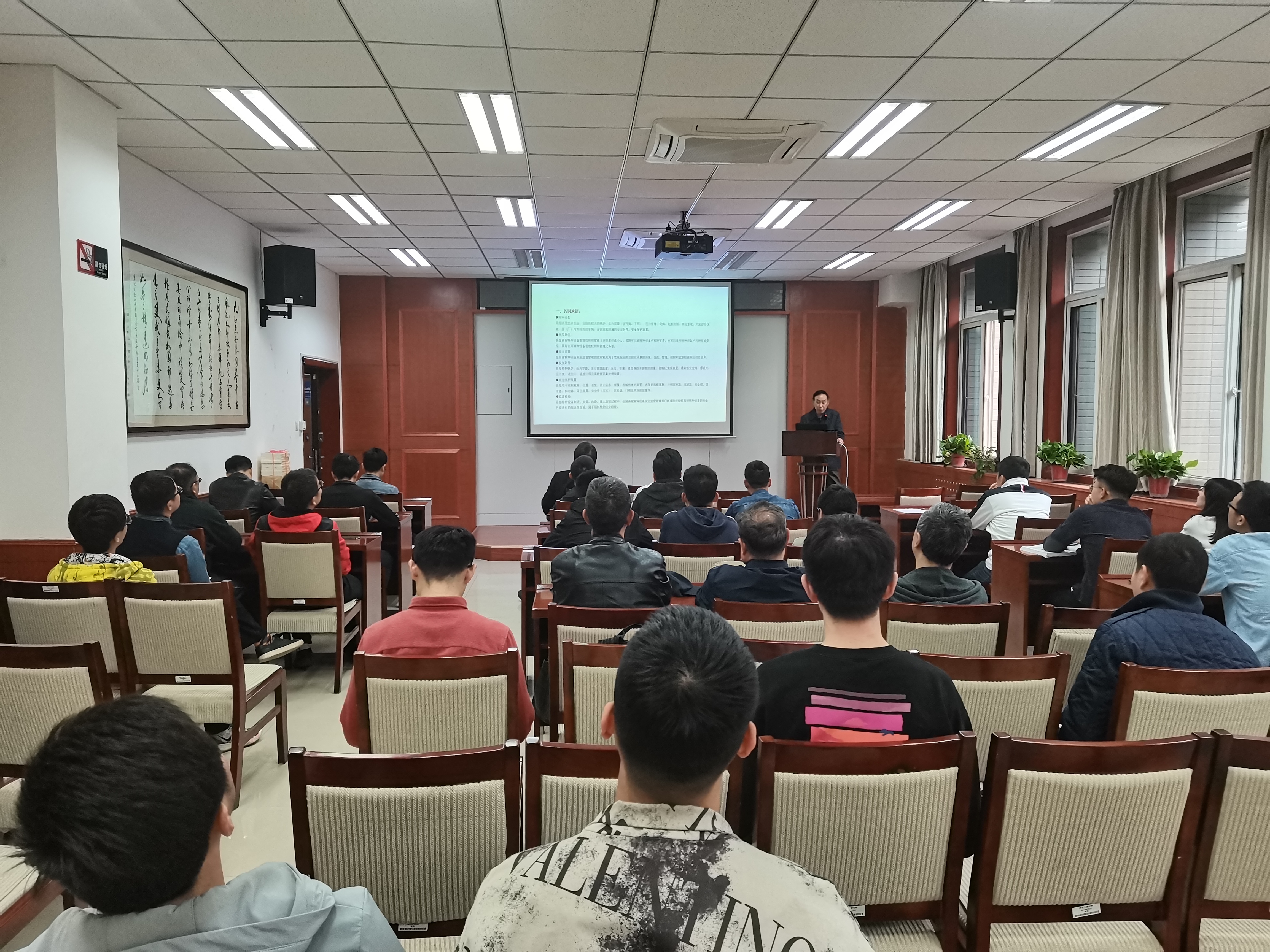 随后,张平老师用自己多年来从事特种设备安全监察工作,参与制定《陕西省特种设备安全监察条例》、《西安市特种设备安全与节能监督管理办法》等法规,以及组织开展多次事故调查等活动总结的工作经验。从特种设备的概述、特种设备使用安全管理要求、特种设备现场安全监督检查、特种设备作业人员管理规定等方面讲述了“强化安全第一责任意识,尽职尽责保障特种设备使用安全”的重要性。授课方式灵活多样,图文并茂,很受大家喜欢。授课过程中用图片展示了二十年来的典型特种设备事故现场,并详细分析了造成事故的原因,结合平时生活和工作实际深入浅出,将问题讲的通俗易懂,使大家更容易理解和记忆。授课中张平老师重点强调杜绝安全事件发生,一定要做到消除物的不安全因素和消除人的不安全行为。