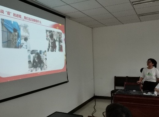 会议第一项,支部成员分享战疫故事。疫情期间,黄蓉同志线上踊跃报名学校发起的广西融水线上义务家教扶贫助力活动,线下积极投身所在村的疫情防疫工作,为保障村民的健康贡献出了自己的一份力量;闫红果同志持续宣传正确的防控措施,参与一线医护人员子女一对一家教志愿服务,受到校内外媒体的报道;李冰然同志作为校团委宣传部副部长,组织筹办了“白衣执甲,英雄归来” 翱翔青年云讲堂,邀请陕西援鄂医疗队医护人员做客分享。同时他还以自身行动号召身边党员参与学校组织的线上家教志愿活动,充分发挥当代青年学生党员的责任和担当。