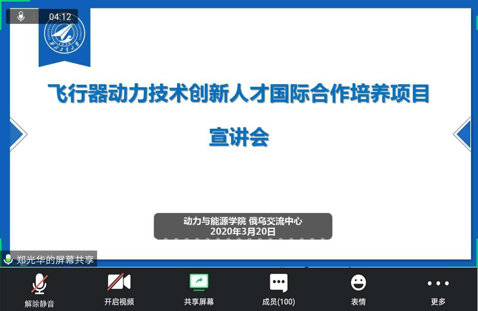 借助腾讯会议平台对“飞行器动力技术创新型人才国际合作培养项目”的相关内容进行宣讲。69成人网