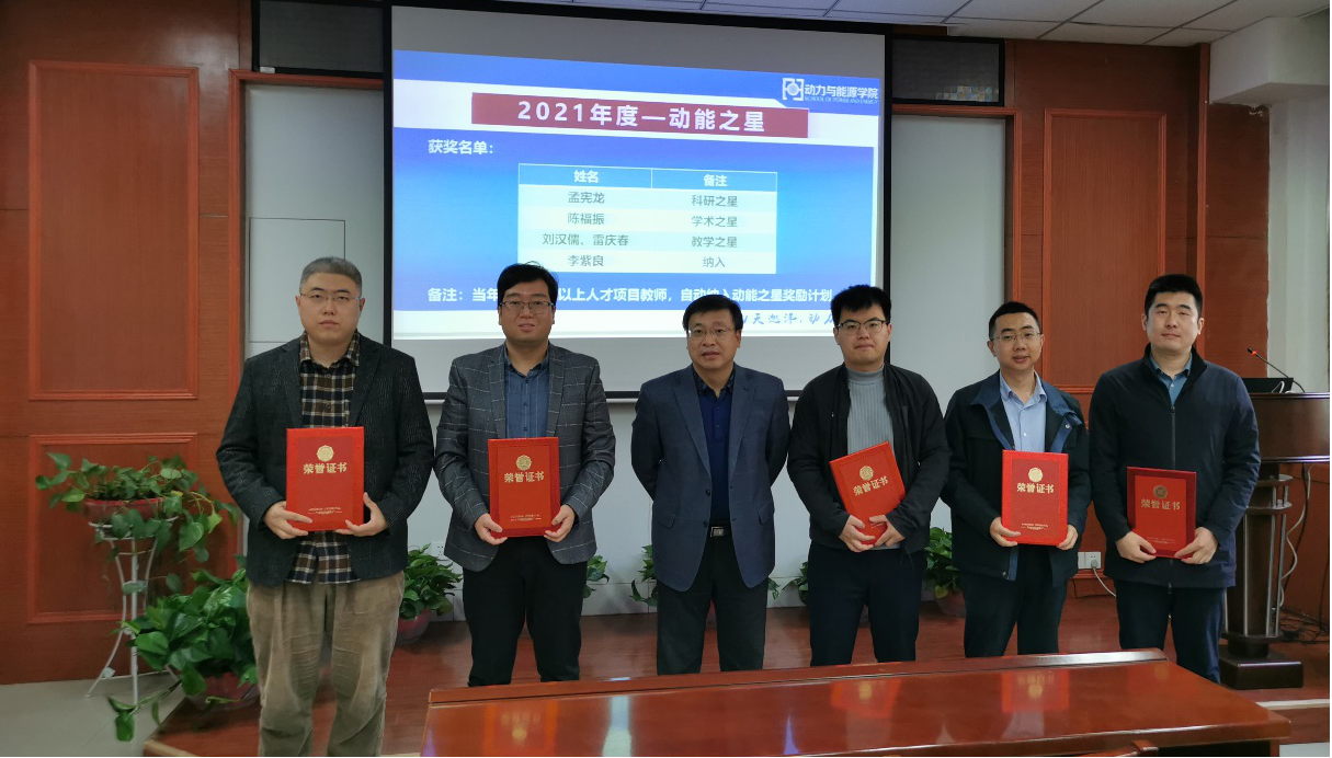 在学院楼225举行了2021年度动能之星颁奖仪式暨青年教师座谈交流会。近40余名青年教师参加了座谈。会议由王占学院长主持,并就如何促进青年教师的科研、教学、思政方面的发展以及团队建设等议题开展了热烈讨论。然后,69成人网
