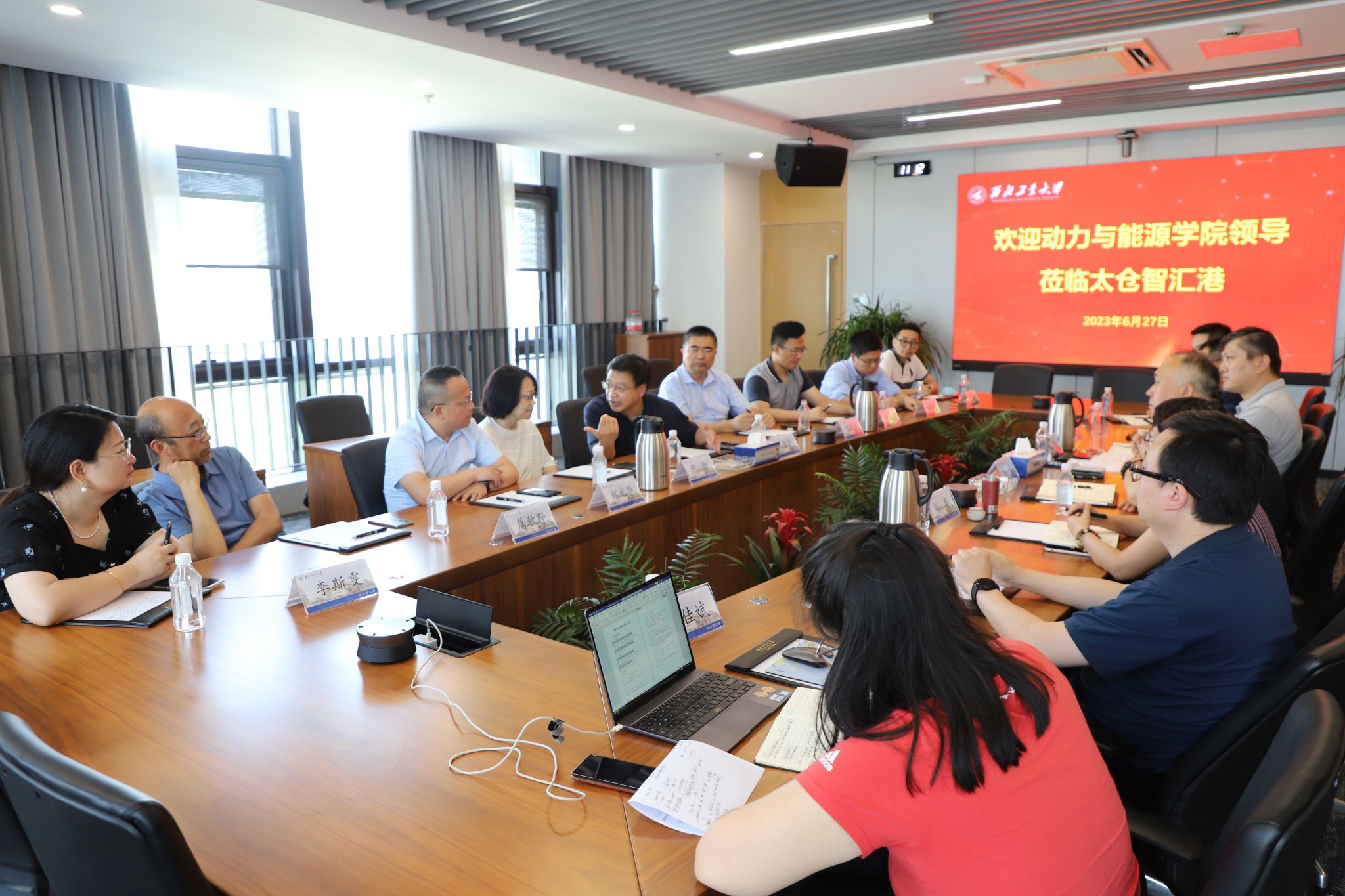 随后,学院一行人与太仓智汇港管委会常务副主任郑曦、太仓智汇港管委会副主任胡秦、宫健、陈磊、金秉乐、教学运行管理中心主任王海涛等智汇港相关负责人展开座谈交流。双方主要围绕人才培养、科学研究、实验平台建设、实习实践资源及国际化教学等事宜开展研讨。王占学表示将以凌云班培养和UIC团队入驻作为合作的突破口,用好智汇港资源,尽快推进学院入驻太仓智汇港相关事宜。