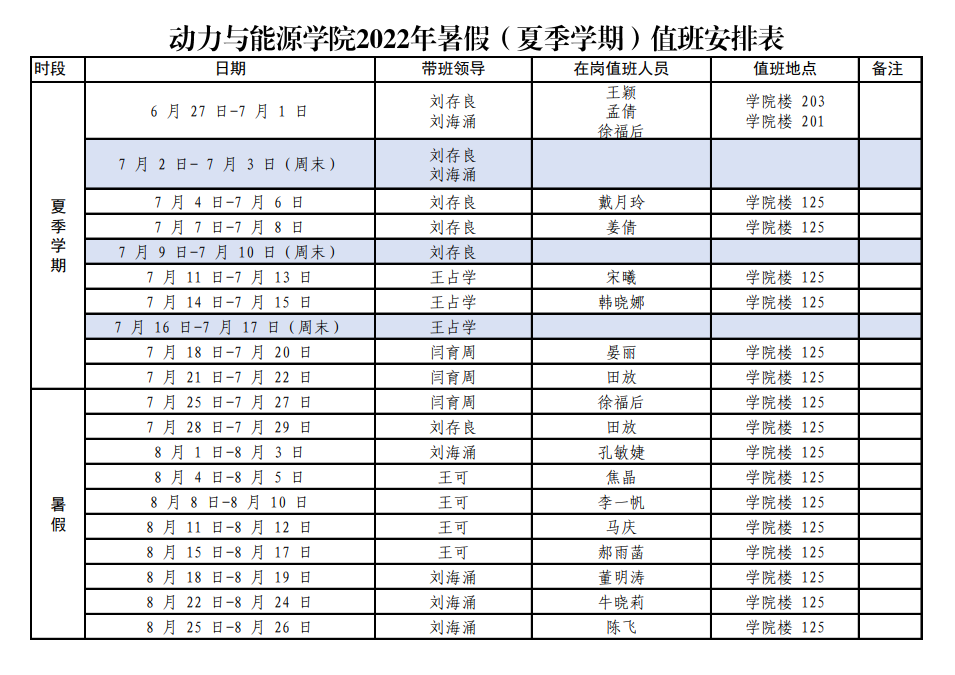 6月27日至7月1日为本科生毕业离校阶段,值班地点设在学院楼203室,其他时间值班室设在学院楼125室。