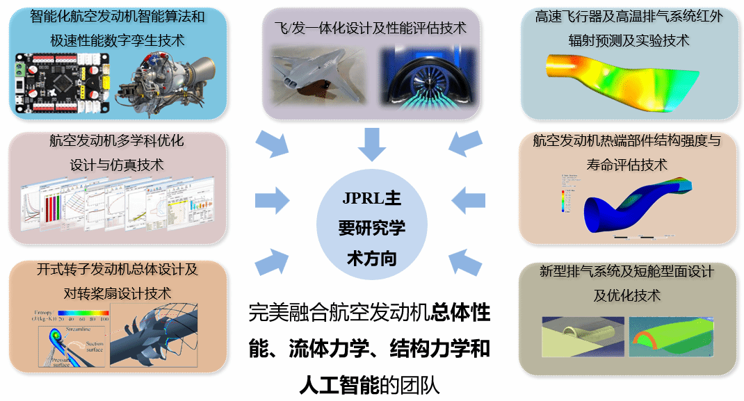 喷气推进理论与工程研究所在航空发动机总体性能、航空发动机数智化和新型排气系统与隐身等方面形成了国内的领先优势,近5年,团队年均科研经费2000余万元,出版专著8部,获国家技术发明二等奖1项,国防科技进步奖4项,吴文俊人工智能科普奖1项。在科研方向上,团队紧密围绕国家关键技术难题,深耕多个领域,是一只完美融合航空发动机总体性能、流体力学、结构力学和人工智能的团队。