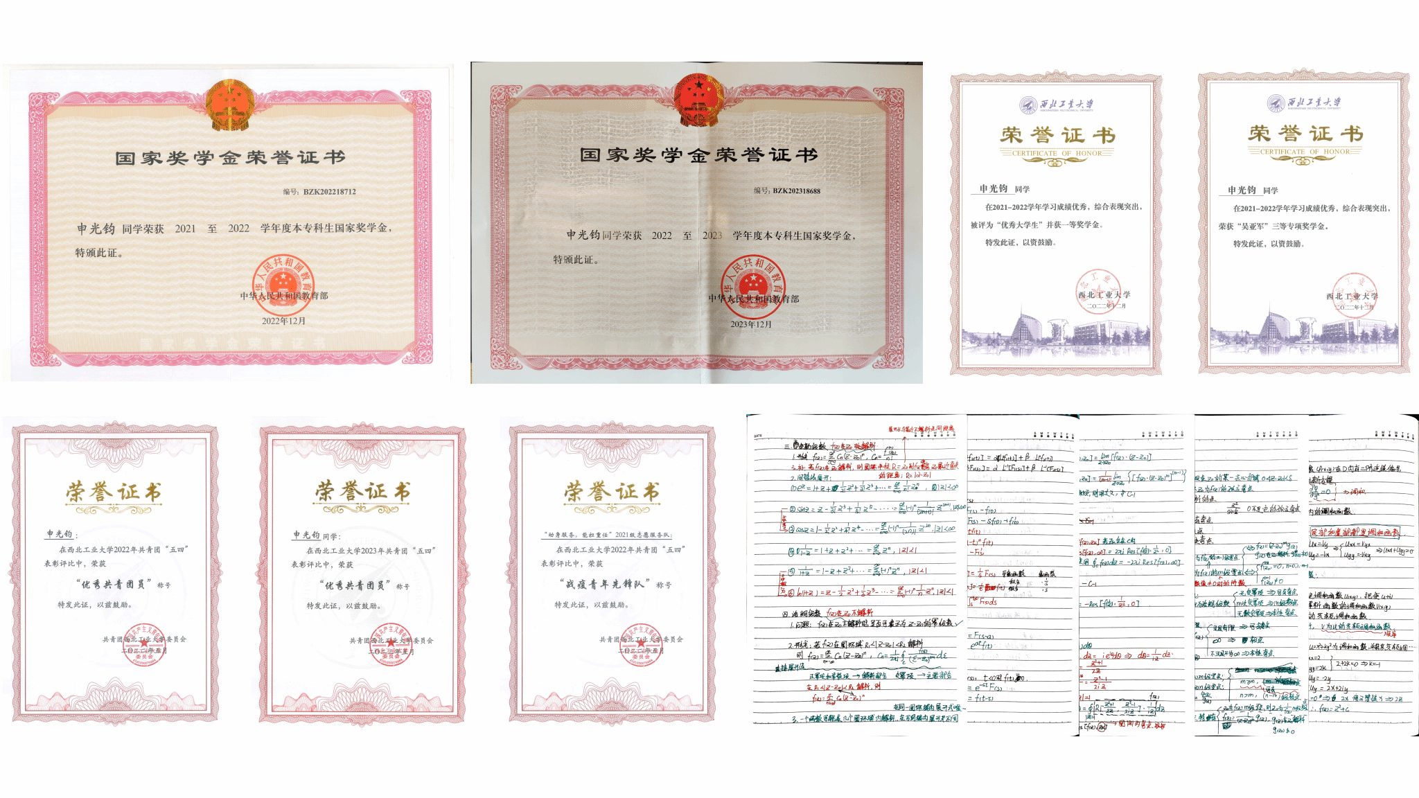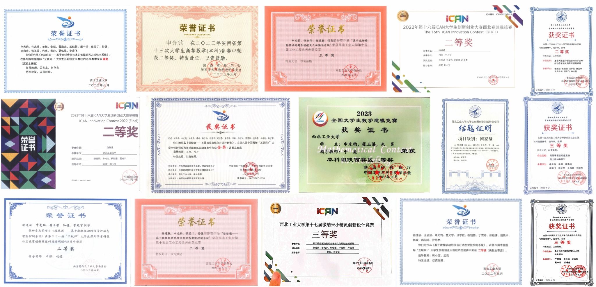 经过一年的锻炼后,申光钧开始以团队负责人的身份带领团队完成项目,参加比赛。在又一届节能减排竞赛的引导下,申光钧带领团队,开发了一种新型升阻复合型垂直轴风力发电机,通过机械结构兼顾了起动特性和风能利用率。在科研见习项目中,他开发了一种基于光纤传能的高密度能量转换系统,为无限续航无人机的动力系统提出了新的方案。此外,他还参加了高等数学竞赛、实验技能大赛、中国国际大学生创新大赛等一系列比赛,从中深切体会着西工大以赛促学、以赛促创的教育模式。