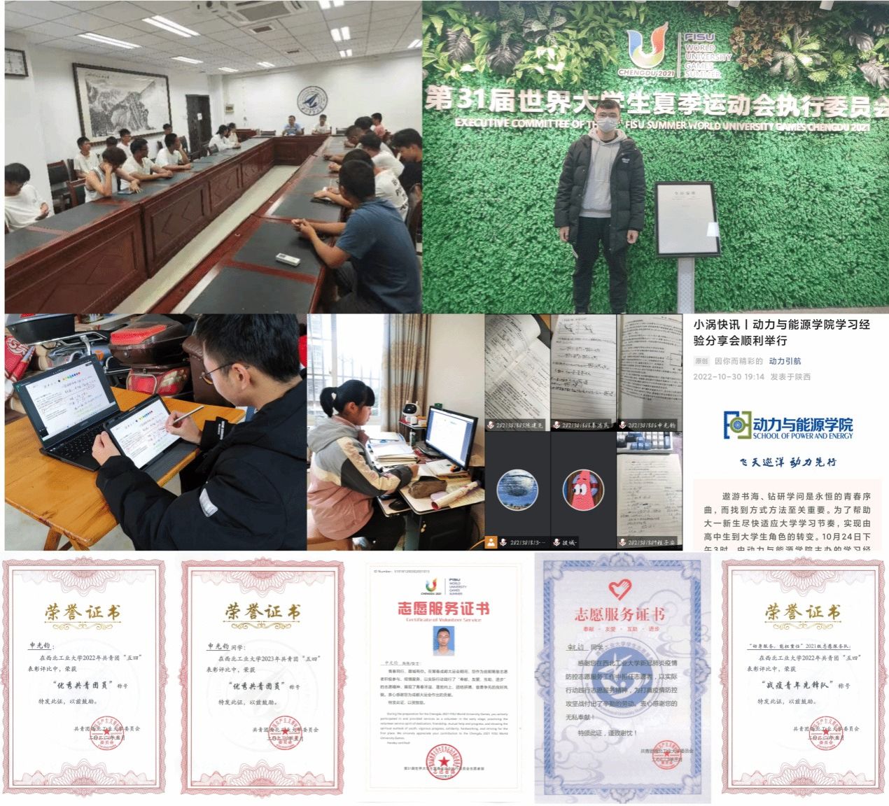 学习航空发动机相关知识。入学后,他铭记新生教育课程中院领导、辅导员对新生的嘱托与期待,立下目标,要成为一个全方面发展的学生。