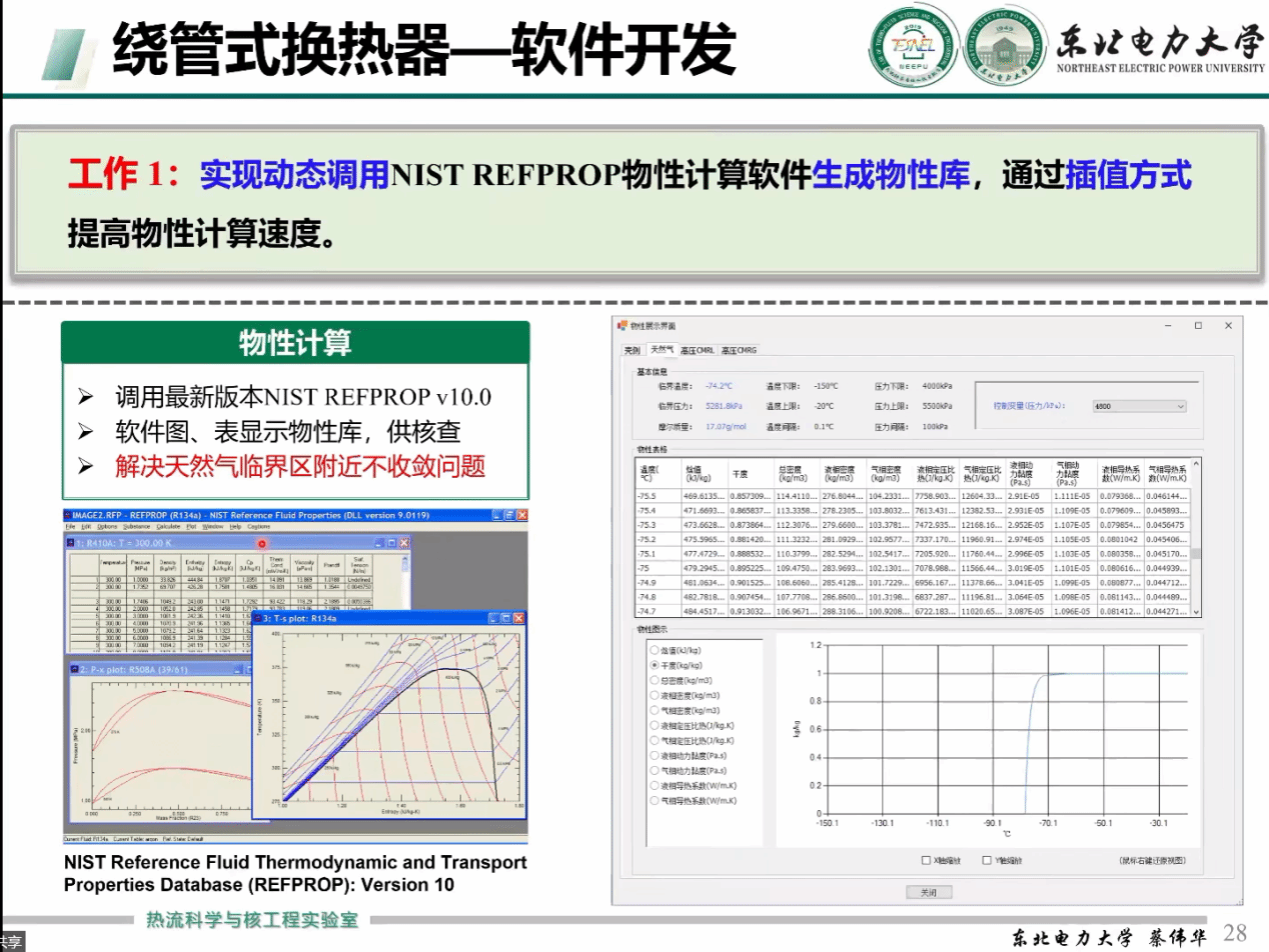 三、软件开发:提出基于迭代的结构优化设计算法,实现动态化调用NIST REFPROP物性计算生物物性库,并通过插值提高软件的计算速度与准确度。