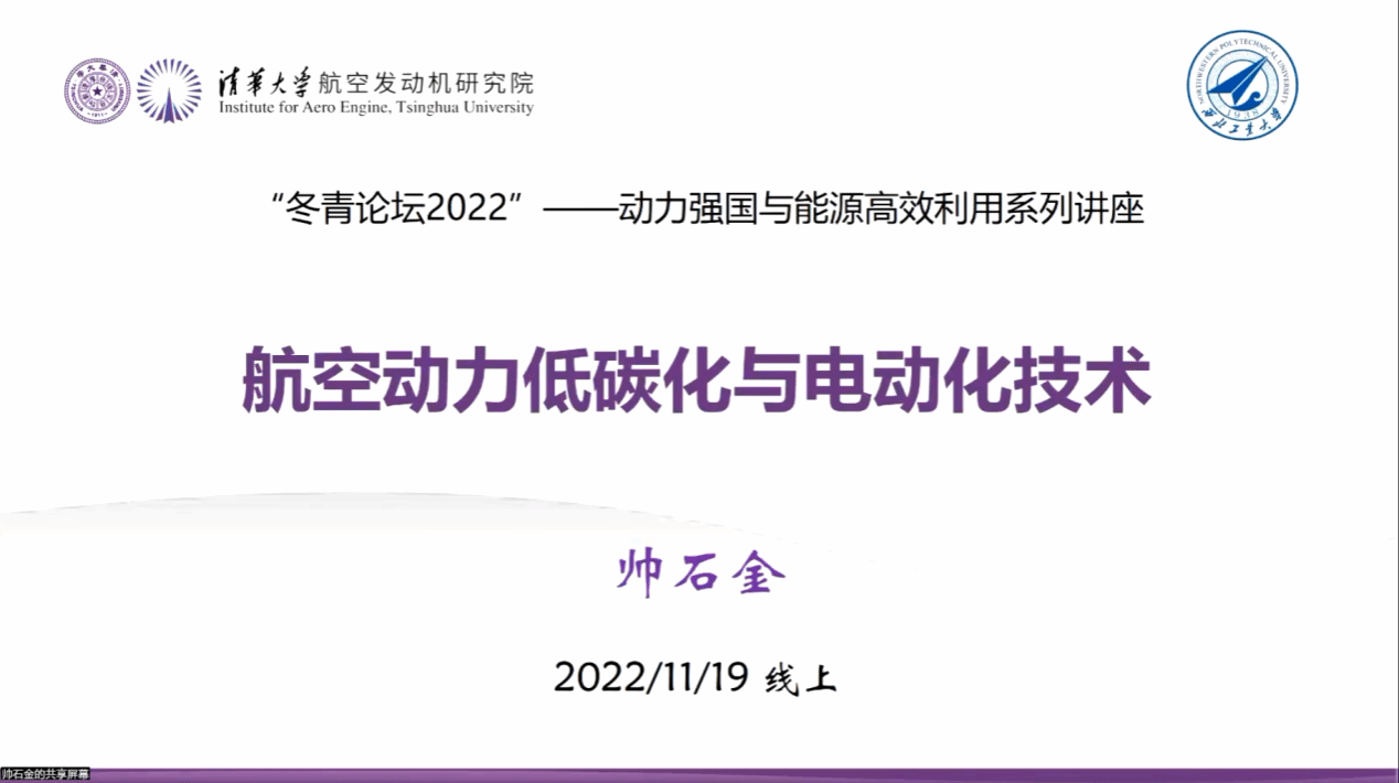 20221119日上午十点,应69成人网 冬青学会郭恒杰教授邀请,清华大学航空发动机研究院党工组组长、副院长,清华大学壳牌清洁交通能源中心主任帅石金教授针对《航空发动机低碳化与电动化技术》进行了一场系统且详实的学术报告。多所著名高校及科研院所的专家、老师和研究生共计百余人次参与报告,论坛由动力与能源学院杜昆副教授主持。