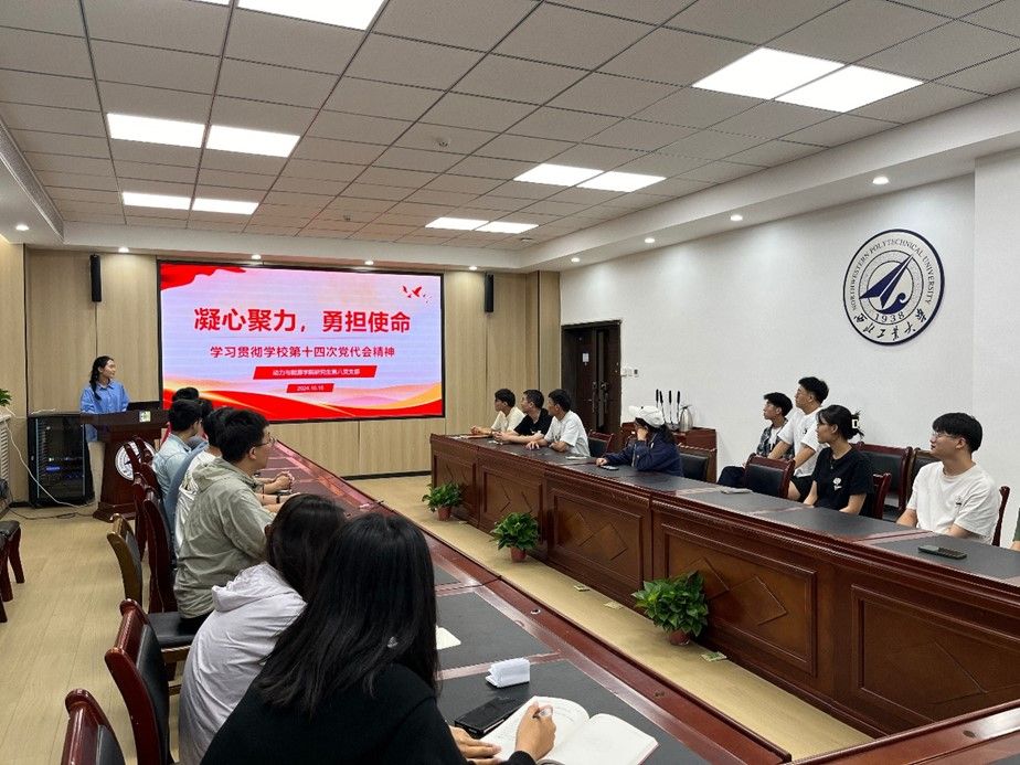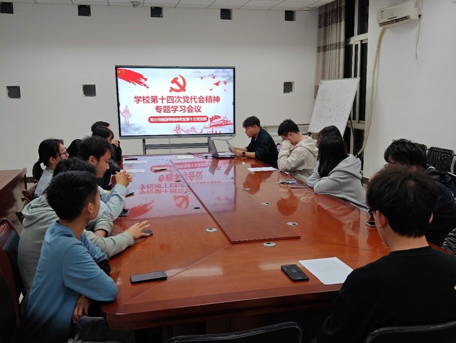 10月14日研究生第五党支部在235室组织了一次集中学习,旨在深入领会学校第十四次党代会的精神。支部党员纷纷表示,作为新时代的青年党员,我们有责任、有义务为学校的发展贡献自己的智慧和力量。