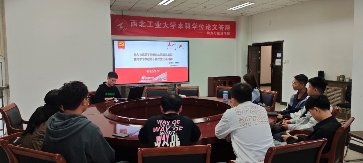 研究生第四党支部深入贯彻学习学校第十四次党代会精神。支部书记从三个方面讲解了党代会的重要内容和主要精神:一是如何理解和把握本次大会主题,二是回顾过去五年的成绩并希望支部成员不忘初心、砥砺奋进,三是从学校远景目标出发,结合第四党支部工作,谈及了支部在建设过程中遇到的问题,并提出了今后支部工作的新要求。此外,支部还倡导“双组融合”模式,鼓励成员间相互交流学业、科研和就业内容,促进共同进步。